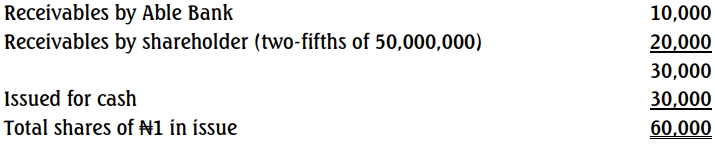 In addition, Able Bank will be repaid one-half of the debt at once, i.e. 50% of ₦45,000,000 = ₦22,500,000