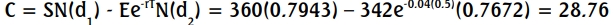 N(d1) = N(0.8215) = 0.2939 + 0.15(0.2967 – 0.2939) = 0.2943