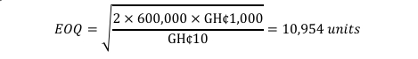 - This means the company should order 10,954 units to minimize costs associated with inventory.(3 marks)