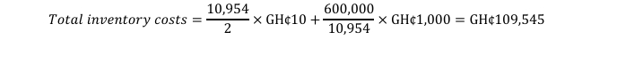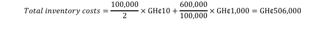 Currently, the company buys 100,000 units of the processed wood board whenever it runs out of wood. The cost price of a processed wood board is GH¢120. It costs GH¢1,000 to place an order to replenish the inventory of processed wood board. On average, it costs GH¢10 to hold one processed wood board per annum.