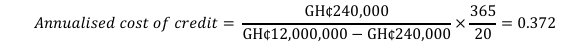 As a form of short-term borrowing, the annualized cost of the bank loan can be calculated as follows: