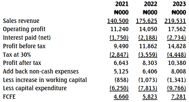 - Capital expenditure was N5 million in 2020 and is expected to grow at approximately the same rate as revenue.