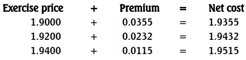 To minimise cost, an exercise price of 1.900 should be selected.