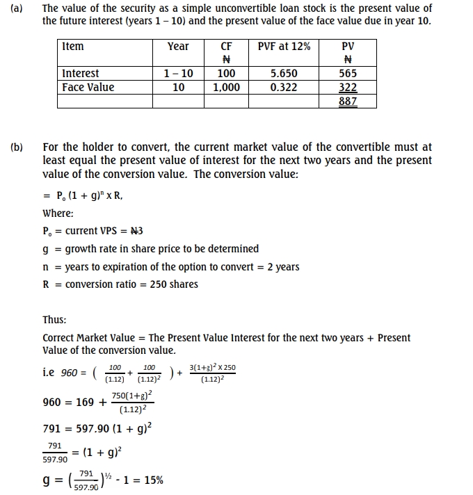 a. What is the value of the security as simple unconvertible loan stock? (5 Marks)