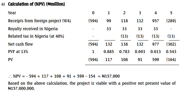 Tax on the company’s profits is at a rate of 40% in both countries, payable one year in arrears. A double taxation agreement exists between Nigeria and the foreign country, and no double taxation is expected to arise. No withholding tax is levied on royalties payable from the foreign country to Nigeria.