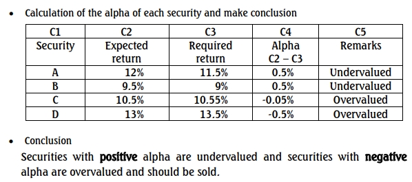 b. Currently, the rate of return on the Federal Government Bond redeemable at par in the year 2018 is 5%. The securities of four companies, Akira Plc., Bombadia Plc., Courage Plc., and Divine Plc., have expected returns of 12%, 9.5%, 10.5%, and 13%, respectively. The average expected return on the market portfolio is 10%, subject to a 6% risk (standard deviation). Other relevant information relating to the four securities of the companies is as stated below: