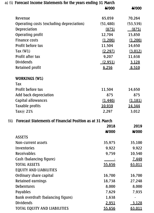 a. Prepare a Forecast Financial Statement (Income Statement, Statement of Financial Position, and Cash Flow Statement) for each of the years ending March 31, 2018, and March 31, 2019.