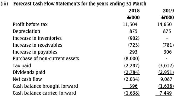 - Purchase of new machinery at N8 million, financed through existing overdraft facilities. Machinery to be depreciated straight-line over 8 years with a N1 million residual value; capital allowances will apply at 18% reducing balance.