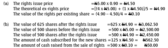 - (c) Discuss the factors that will influence the actual ex-rights price per share. (4 Marks)