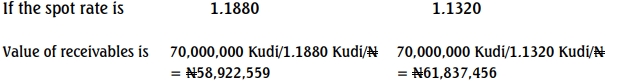 Alpha Plc. is a Nigerian manufacturer of plastic containers, selling across West African and other African countries. In three months, Alpha Plc. is due to receive 70 million Kudi from a Central African country. At today’s board meeting, the directors will discuss the need to hedge the foreign exchange exposure associated with this transaction and potential methods.