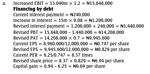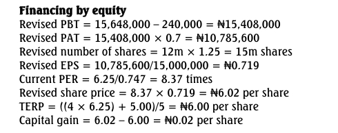 - Debt: Issue N15m in 8% loan notes, with each note at a nominal value of N100.