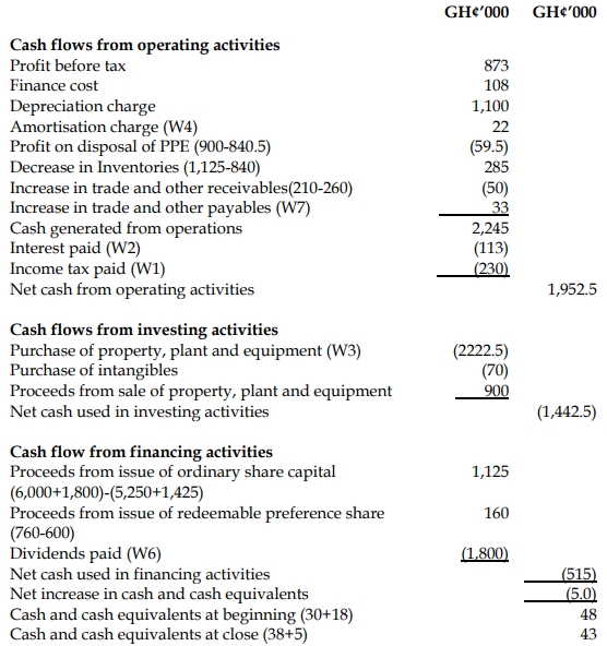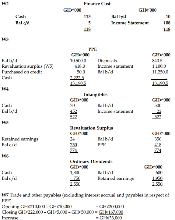 iii) During the year, Haruna Ltd sold plant and equipment with a carrying amount of GH¢840,500 for GH¢900,000. Total depreciation charges for the year amounted to GH¢1,100,000. Plant costing GH¢50,000 was purchased on credit, and the amount is included within trade and other payables.