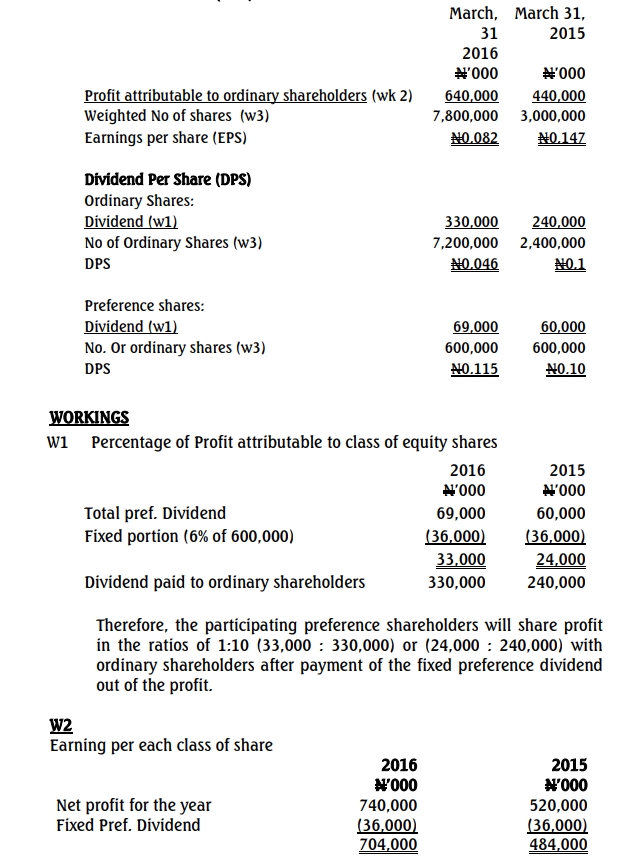 - Calculate the earnings per share (EPS) in accordance with IAS 33 and the dividend per share (DPS) for the years ended March 31, 2015, and 2016. (10 Marks)
