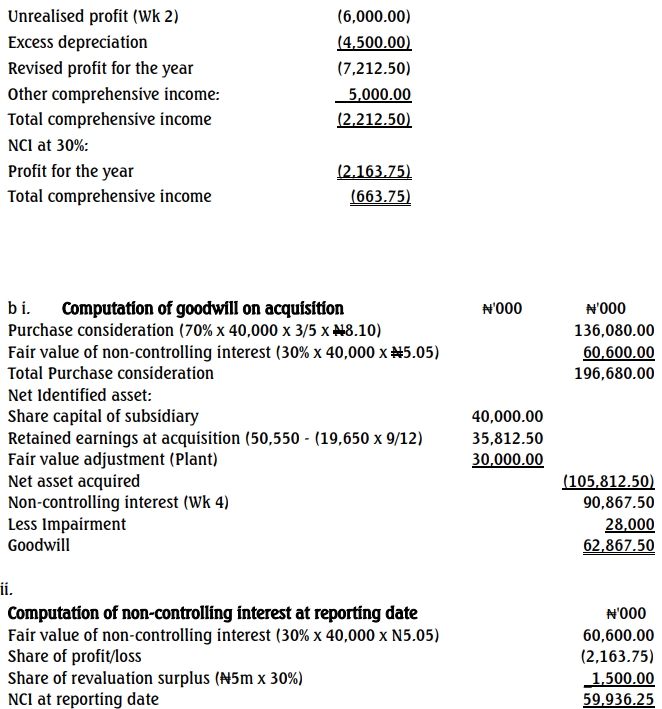 b. Calculate the goodwill on acquisition and the non-controlling interest at the reporting date. (4 Marks)