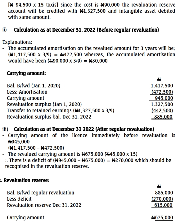 b. Olumo-Taxi Limited’s financial year ends on December 31. The company adopted the revaluation model for its intangible assets and revalues them on a regular three-year cycle.