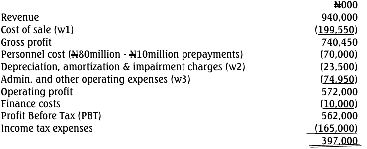 - (i) Value of opening inventories to be included in the Statement of Profit or Loss and Other Comprehensive Income. (2 Marks)