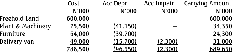 - (iv) The carrying amount and impairment if any on delivery van (2 Marks)
