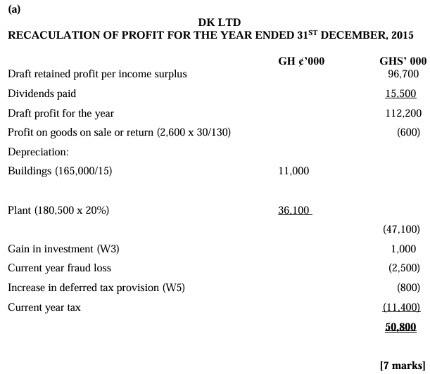 a) Prepare a statement showing the recalculation of DX Ltd’s profit for the year ended 31 March 2015. (7 marks)