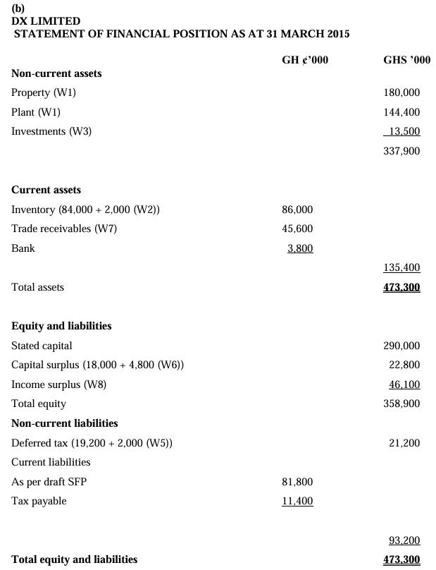 b) Redraft the statement of financial position of DX Ltd as at 31 March 2015. (13 marks)