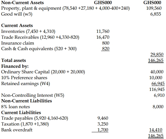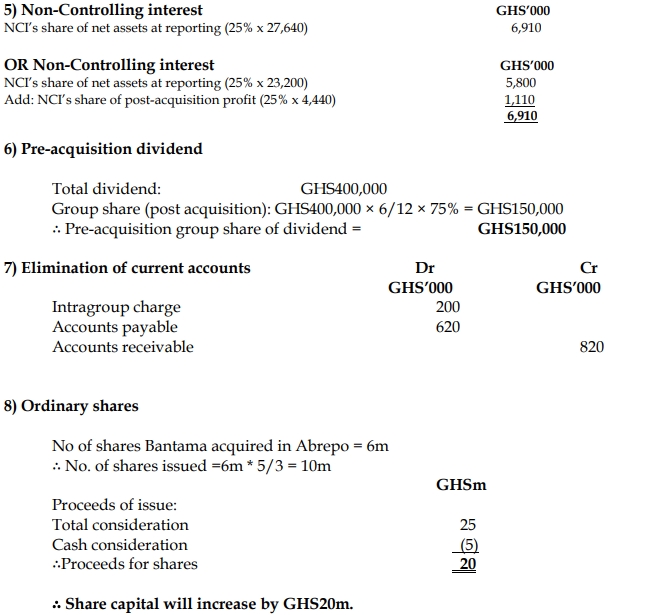 - At the year-end, an impairment review was carried out on the consolidated goodwill arising from the acquisition of Abrepo Ltd, and an impairment loss of GH¢595,000 was identified. No adjustment has yet been made for this. It is group policy to value non-controlling interest at acquisition at its proportionate share of the fair value of the subsidiary’s identifiable net assets.