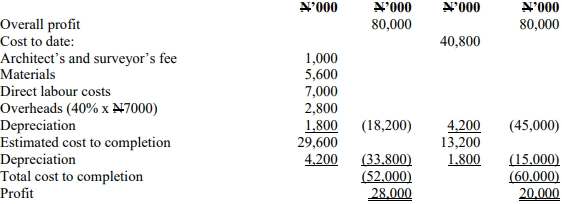 - Plant and machinery used exclusively on the contract: N7,200,000 (Depreciation based on period of use)