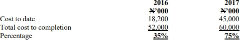 Akawo Limited is a building contracting firm based in Abuja. ABC Limited awarded a contract to Akawo Limited to construct a residential building in Lagos. The agreed contract price is N80 million, and the completion date is December 31, 2017.