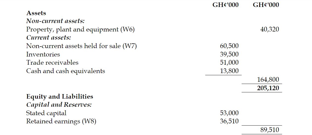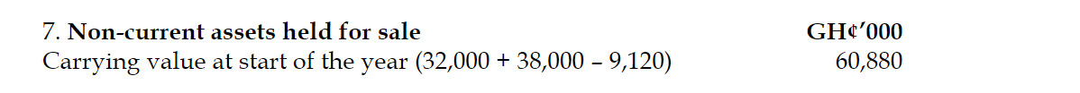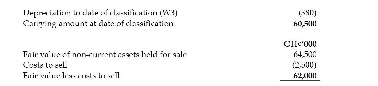 On 30 June 2018, the directors decided to sell the property because more suitable leasehold property had become available at a very competitive cost. They advertised the property for sale at that date at what was considered to be a realistic asking price of GH¢68 million. They estimated that costs of GH¢3 million would be necessary in order to sell the property. On 1 December 2018, they reduced the asking price to GH¢64.5 million and sold the property at this price shortly after the year-end. Costs to sell totaled GH¢2.5 million.