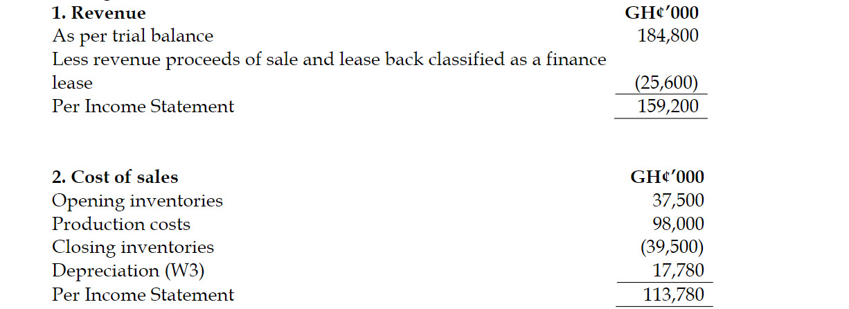 ii) On 1 January 2018, Biggs Ltd sold some of its plant and equipment to a finance company. Biggs Ltd credited the sales proceeds of GH¢25.6 million to revenue. The plant and equipment were purchased by Biggs Ltd on 1 January 2017 at a total cost of GH¢32 million and were being depreciated over five years. The cost and accumulated depreciation of the disposed asset are still included in the PPE cost and accumulated depreciation accounts.