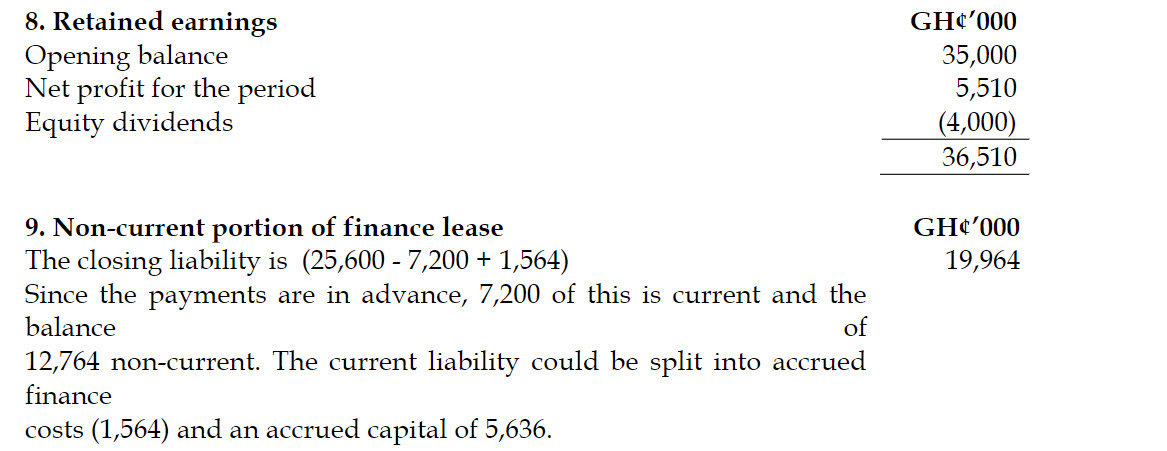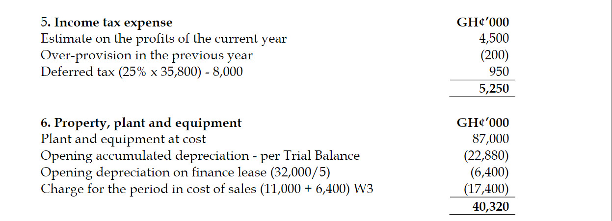 iv) The estimated income tax on the profits for the year to 31 December 2018 is GH¢4.5 million. During the year GH¢4.2 million was paid in full and final settlement of income tax on the profits for the year ended 31 December 2017. The statement of financial position at 31 December 2017 had included GH¢4.4 million in respect of this liability. At 31 December 2018, the carrying amounts of the net assets of Biggs Ltd exceeded their tax base by GH¢35.8 million. Assume an income tax rate of 25%.