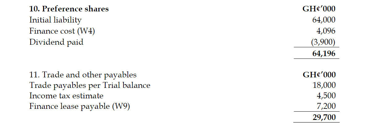 iii) On 1 January 2018, Biggs Ltd issued 200 million preference shares at 32.50 pesewas each. Costs of issue were GH¢1 million so the net proceeds of the issue were GH¢64 million. The preference shareholders will receive an annual dividend on 31 December each year of GH¢3.9 million. The shares will be redeemed at par on 31 December 2022. The effective annual finance cost attached to these shares is approximately 6.4%. The first annual dividend was paid on 31 December 2018 and is included in dividends paid.