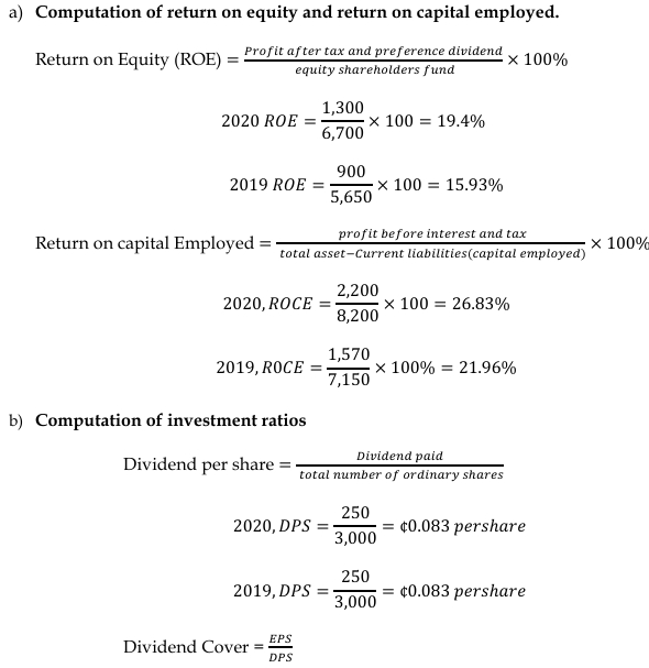 b) Calculate, for both years, TWO (2) investment ratios to a potential investor. (4 marks)