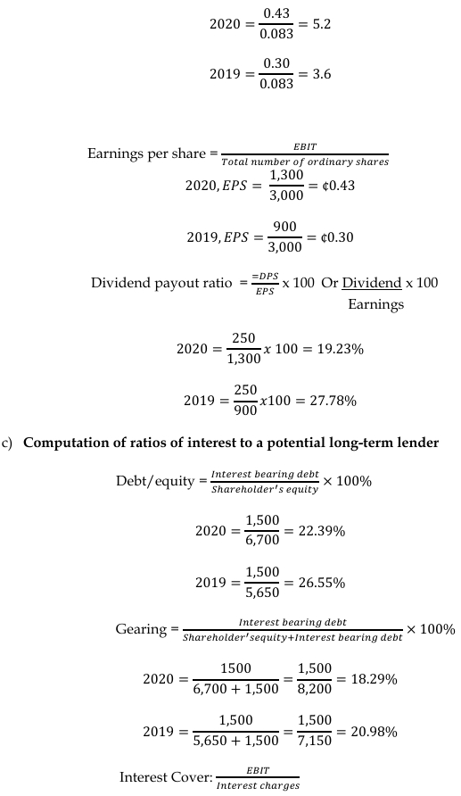 d) Comment on the performance of Bebebe to a potential shareholder and lender using the ratios calculated above. (5 marks)