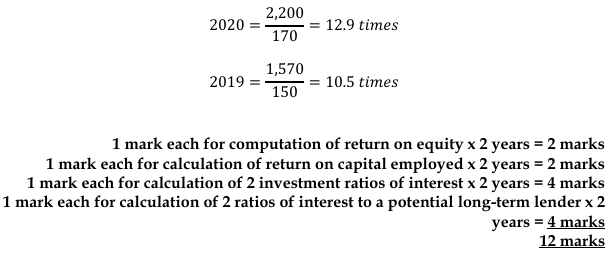 - Interest Cover has increased from 10.5 times in 2019 to 12.9 times in 2020, suggesting that the company is generating sufficient profits to cover its interest payments comfortably.