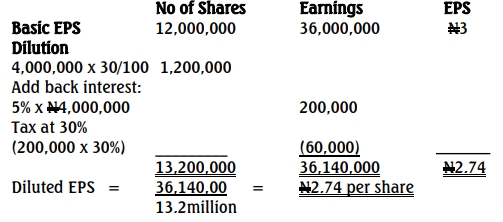 1. Convertible Instruments: Adjust earnings for saved interest (net of tax) and adjust shares for the increase due to conversion.