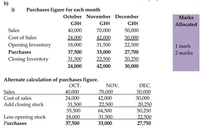 • The business maintains its closing inventory levels at 75% of the following month’s cost of sales. Inventory at the beginning of October is expected to amount to GH¢18,000.