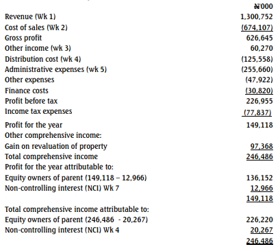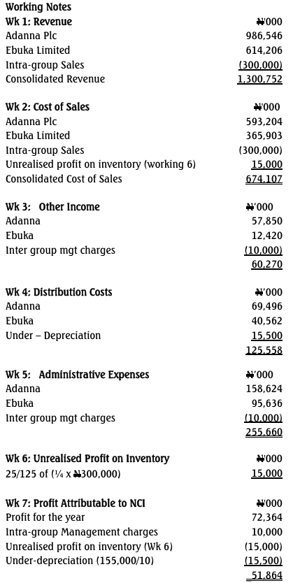 Adanna Plc has a subsidiary, Ebuka Limited. The statement of profit or loss and other comprehensive income for the companies is as follows: