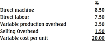 Grammar Limited manufactures product G of which the sales for the year 2015 was ₦25,000,000 at the unit price of ₦40. Production overhead and selling overhead were ₦2.50 and ₦1.50 per unit, respectively. The following additional information are available for the year 2015: