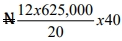 Value 625,000 x N20.00 = 125,000,000