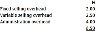 | Fixed selling overhead | 2.00 |