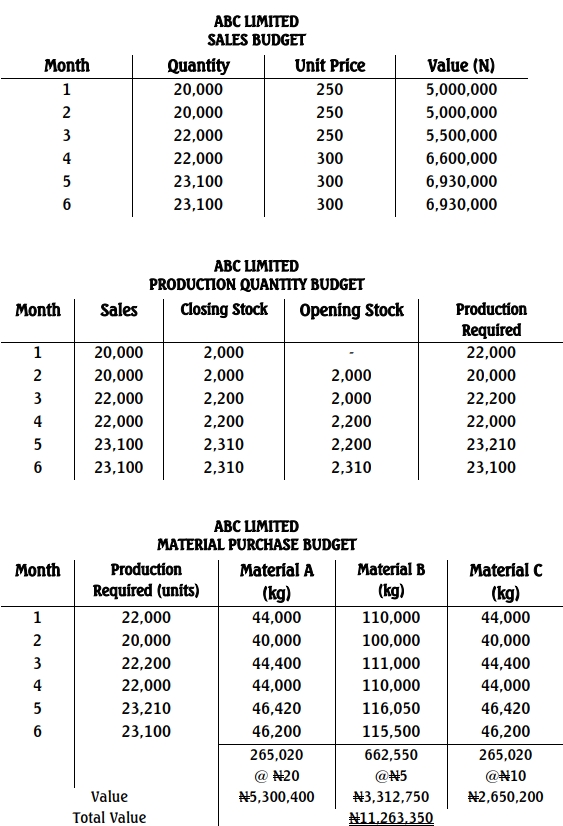 ABC Limited is engaged in the production of AiBiCi product and the following data were extracted from the Budget Committee’s Report: