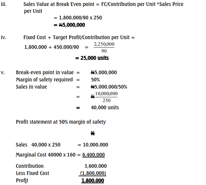 - Number of units to be sold to achieve a profit of ₦450,000 (2 Marks)