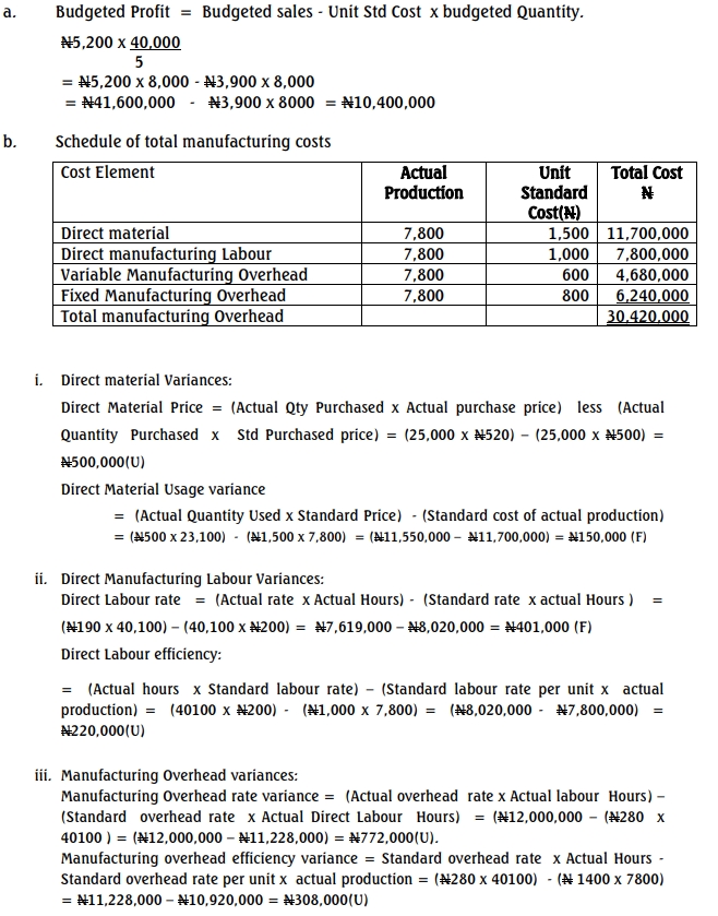 • Direct manufacturing labor: 40,100 hours at N190 per hour