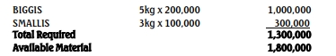 Materials needed to produce 200,000 units of Biggis & 100,000 units of Smallis