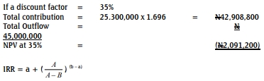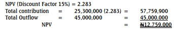 (12 Marks) - Assuming consistent conditions for three years with an investment cost of ₦45,000,000 and a 15% cost of capital: