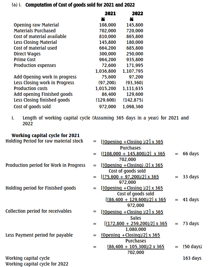 ii. Calculate the length of the working capital cycle (assuming 365 days in the year) for 2021 and 2022. (7 Marks)