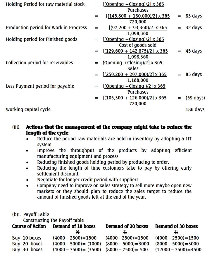 iii. List the actions that the management of the company might take to reduce the length of the working capital cycle. (5 Marks)