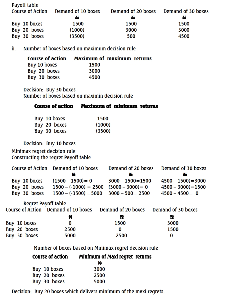 i. Construct the Pay-off table for this business in Owerri. (7 Marks)