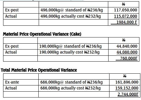 The actual cost of wheat in October was N232 per kg. 496,000kg of wheat was used to
