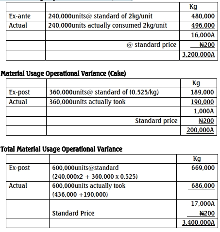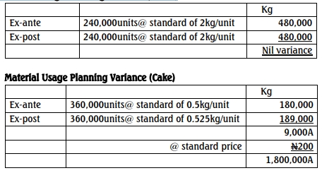 The standard cost of the wheat used in baking the products is N200 per kg. Each piece
