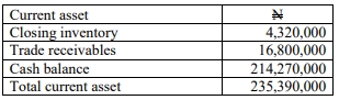 The current ratio = N235,390,000/14,400,000 = 16.35: 1